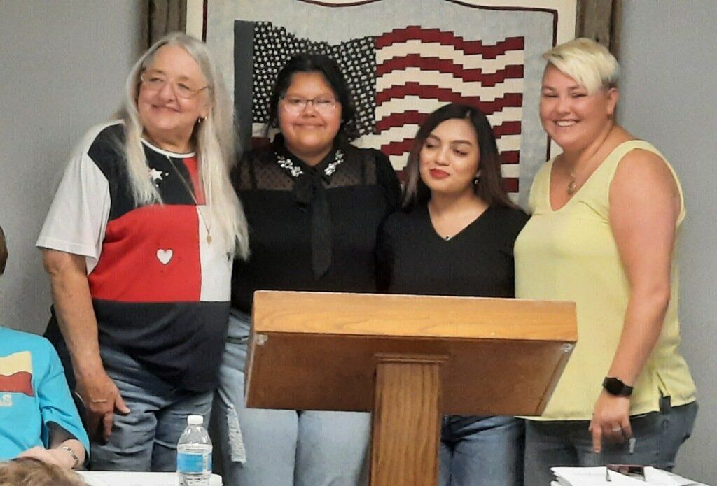 Post 491 Auxiliary President Courtney Hayes and Pam Parry with two of the Girls State 2022 attendees - Amy Hernandez & Ashley Jimenez.